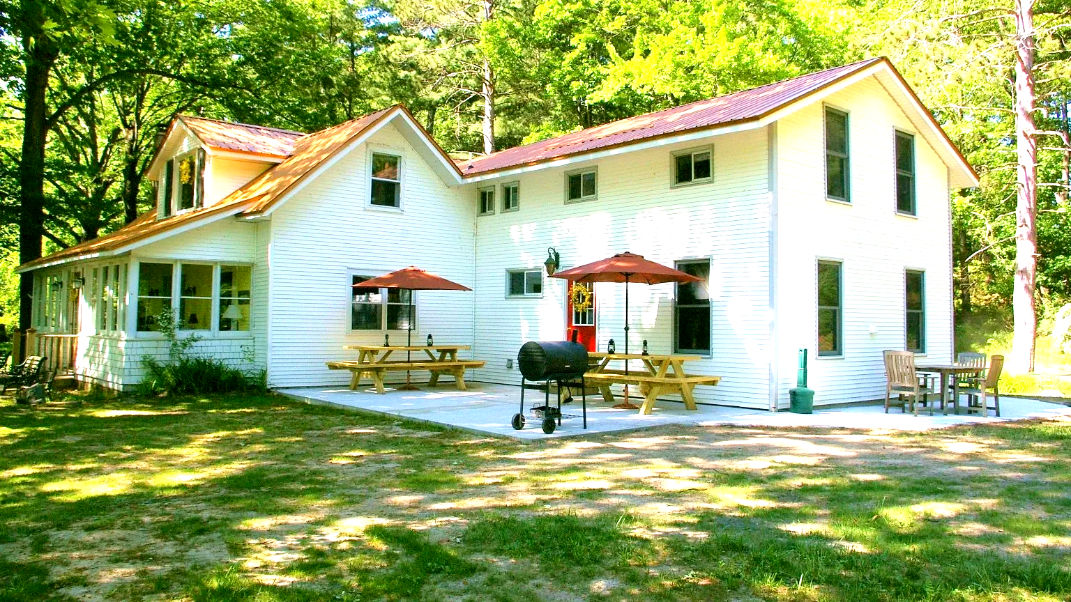 Greetings! The Old Dam Inn is a spacious waterfront retreat in scenic Northwest Michigan. You will enjoy exclusive use of the entire three acre property, as well as the eight bedroom home and 400 feet of water frontage on the Penoyer Creek Channel, which connects to four beautiful lakes.